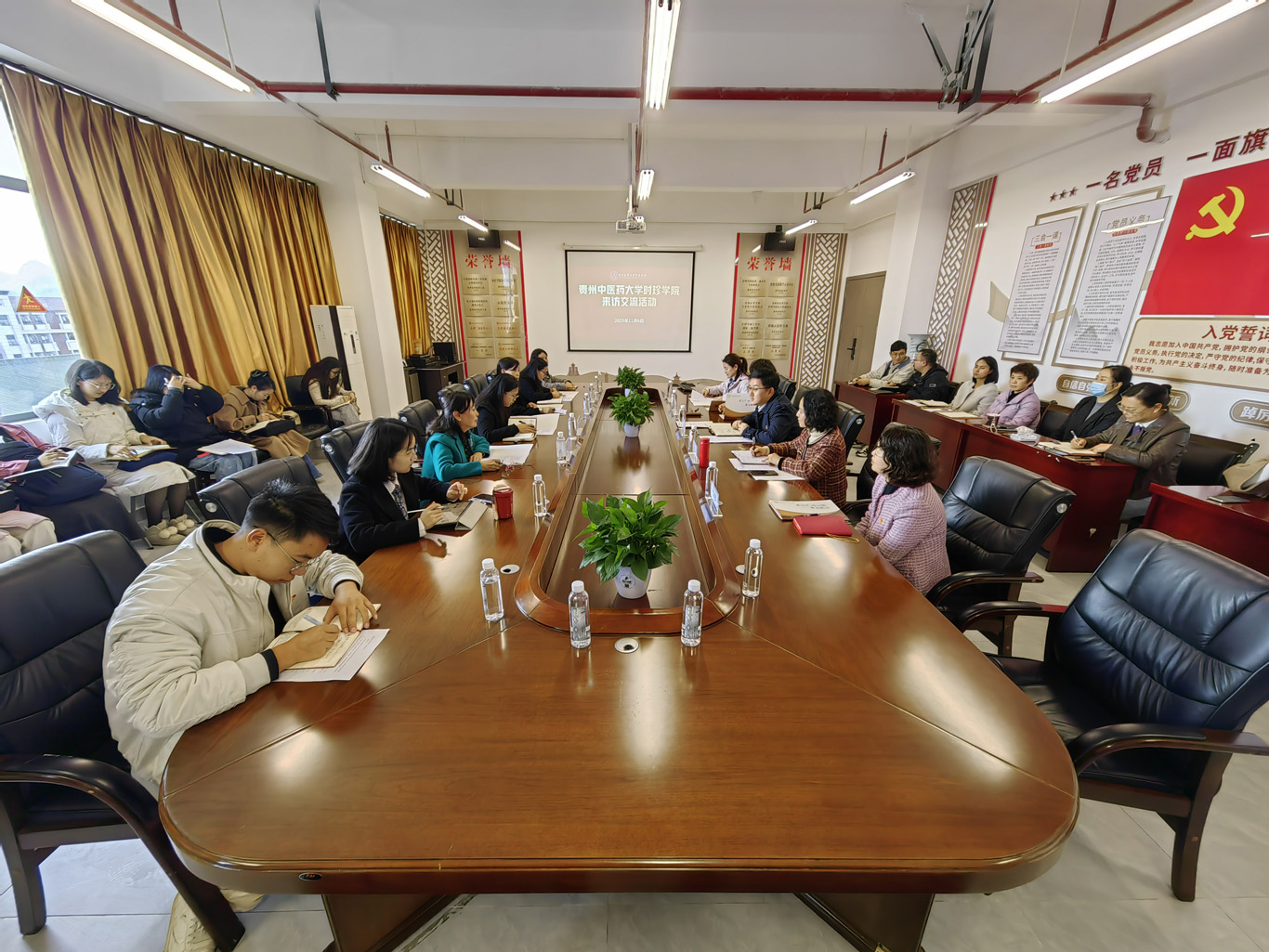 11月6日,贵州中医药大学时珍学院党委组织部负责人车鑫、护理学部院长李丽一行到新利体育开展交流。学校党委组织部副部长蔡炼出席交流活动,新利体育党政领导班子、科级干部、党支部书记和教职工代表参与交流。