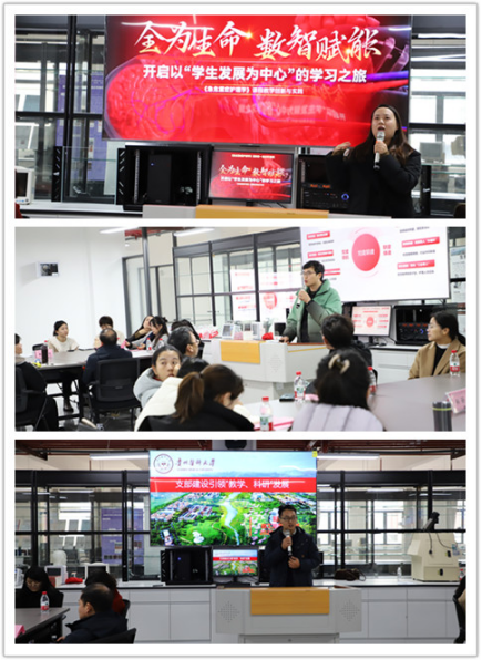 在经验分享环节,新利体育马丽老师围绕国家级一流课程《急危重症护理学》建设,从课程设计、教学创新到实践应用,全面分享了课程建设的宝贵经验与显著成效;李勇老师详细汇报了新利体育教职工党支部“双带头人”强国行专项行动的建设情况,展现了基层党支部在党建与业务融合中的先锋引领作用;生物与工程学院彭建老师结合自身实践,分享了以支部为引领推动“教学、科研”协同发展的工作思路与实践成果,为跨院交流提供了有益借鉴。
