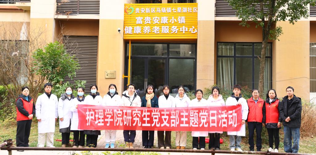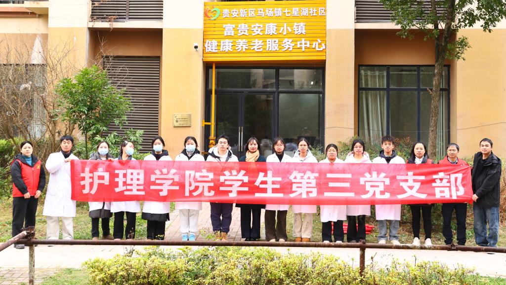 12月3日,新利体育研究生党支部、学生第三党支部赴贵安新区马场镇七星湖社区开展“传承医者仁心,服务基层群众”志愿服务活动。活动由研究生党支部书记殷艳、副书记唐郅尧及姚爱玲老师带队,师生党员代表立足护理专业优势,将专业实践与“为群众办实事”要求深度结合,为社区居民送上精准健康服务。