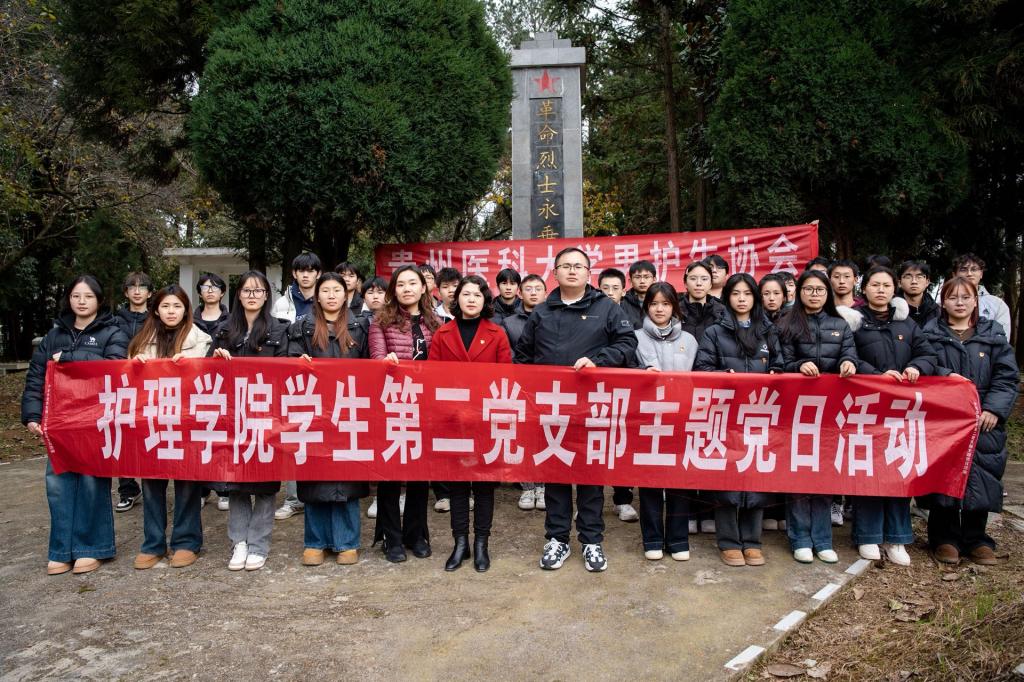12月10日,为深入贯彻落实党的二十届四中全会精神,深切缅怀革命先烈,大力弘扬爱国主义精神,在“国家公祭日”到来之际,新利体育学生第二党支部党员与贵州医科大学男护生协会成员一同在贵安新区马场镇烈士陵园开展了“缅怀英烈铸忠魂,同心共筑强国梦”主题党日活动。活动由党支部书记刘文壮主持,新利体育党委委员、副院长刘志燕及党委委员、综合办公室副主任李颖出席本次活动。